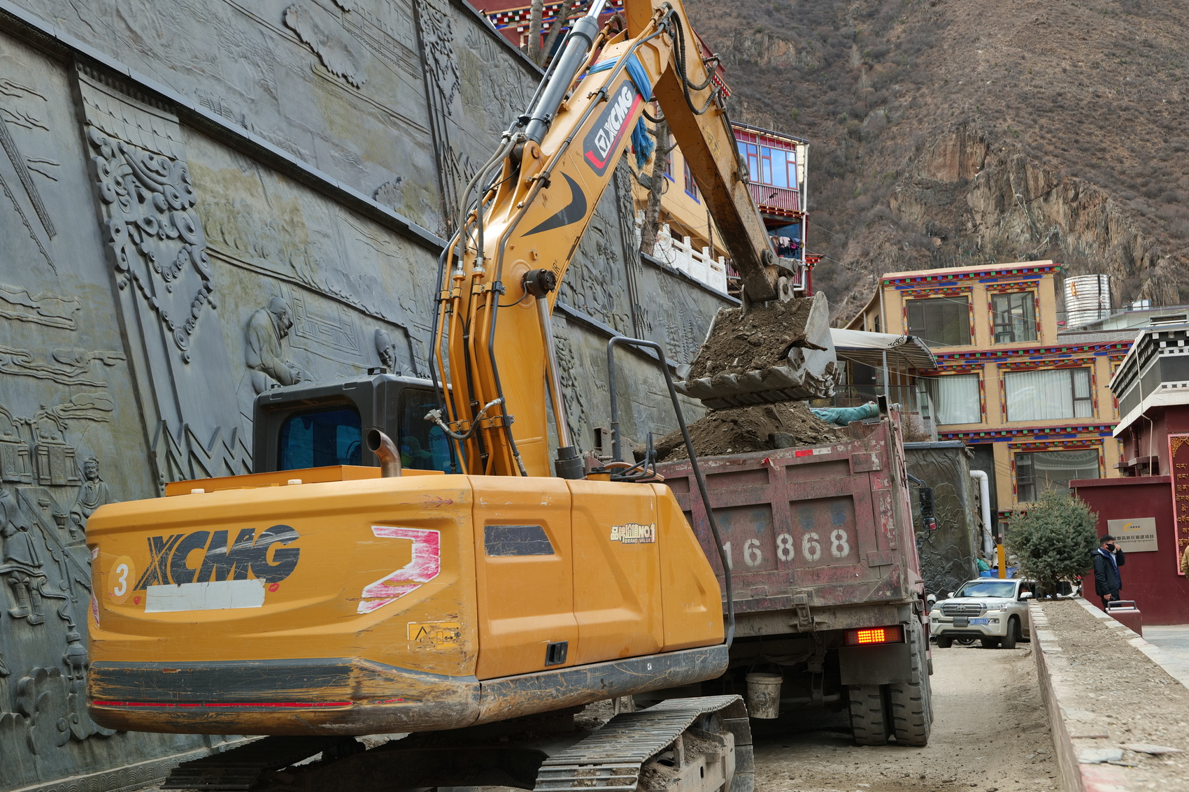 4月上旬,德格县印经院周边的欧普隆市政基础设施建设项目施工现场是一派热火朝天的建设景象,挖掘机、渣土车等大型施工机械不断运转,施工人员繁忙地穿梭在项目建设每一处……