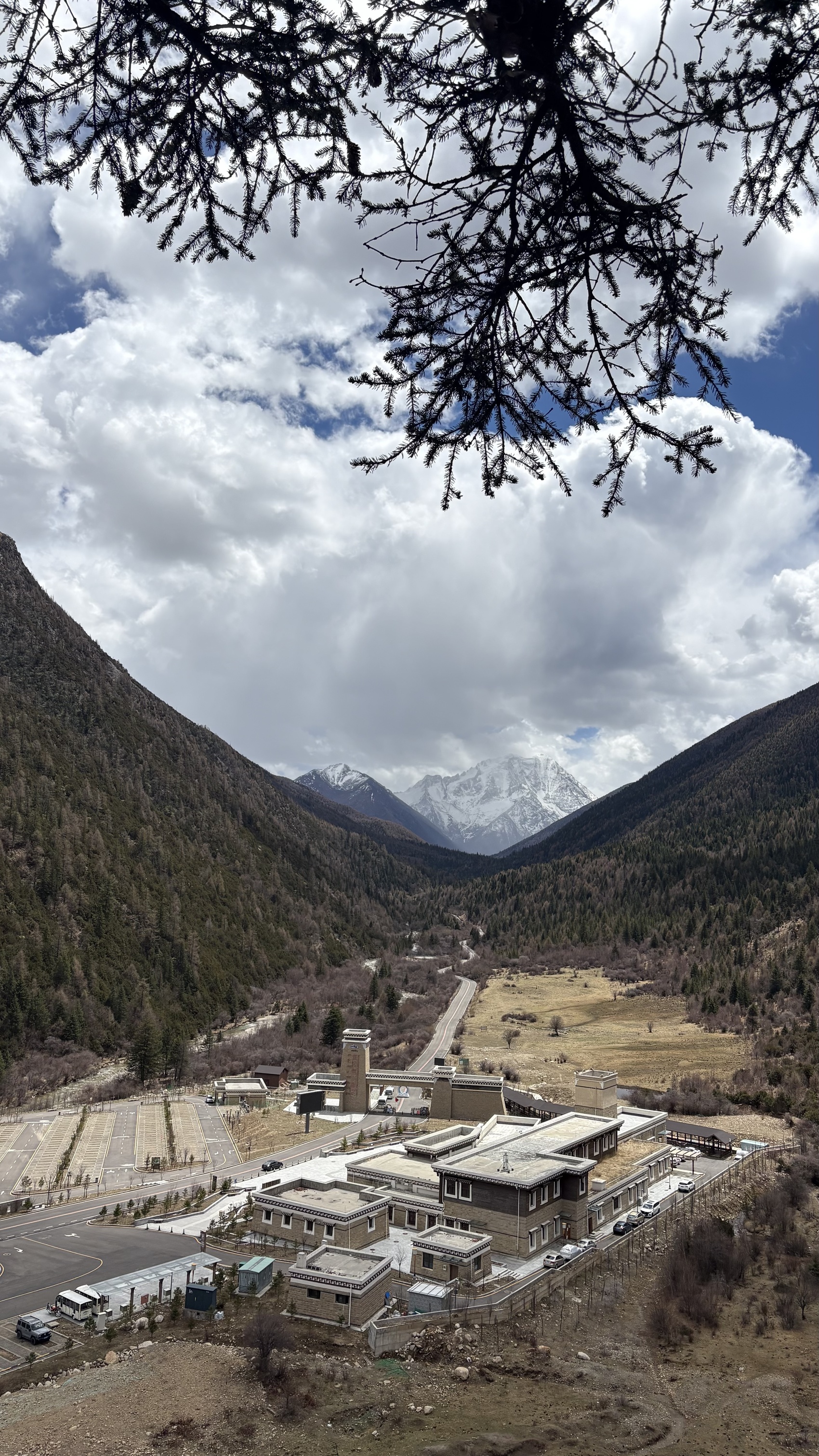 在亚拉雪山观景台拍摄到的景区徒步入口。(张立峰 摄)