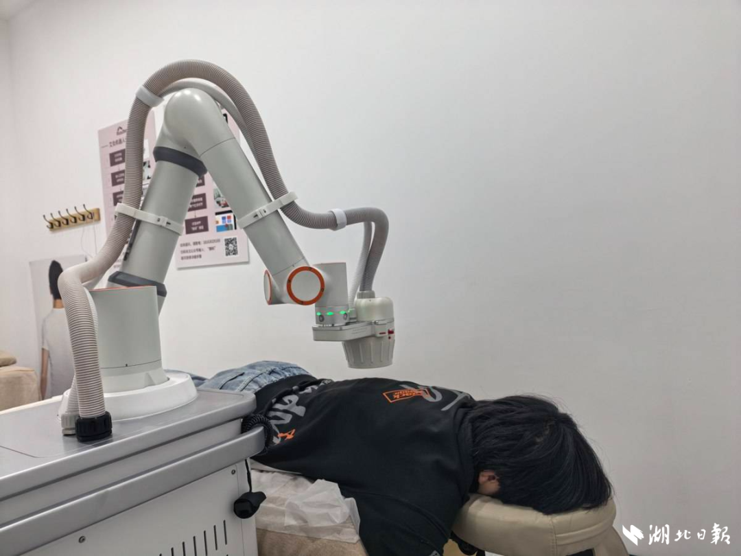 消费者的反馈也印证了艾灸机器人的优势。33岁的王女士在光谷附近上班,通过线下推广了解后到店体验。她感慨:“以前也在养生店里做过艾灸,烟味儿很大,在这里体验艾灸机器人,全程没有什么烟味儿,手法也挺稳定的,我很喜欢。”