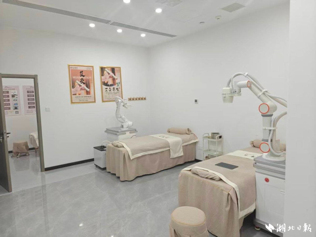“您好,需要了解艾灸的相关知识吗?”一家艾灸机器人体验店门口,一台导诊机器人感应到有人经过,主动和客人打招呼,热情引导客人进入店内。4月10日,湖北日报全媒记者走进这家位于武汉中电智谷的艾灸店内,没有预想中的烟雾缭绕,店内陈设简洁明快,几台艾灸机器人安静地立在床边。