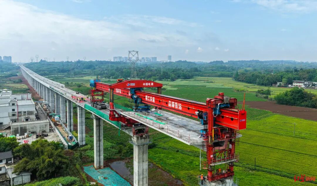 ▲市域(郊)铁路成眉线成都段启动架梁施工