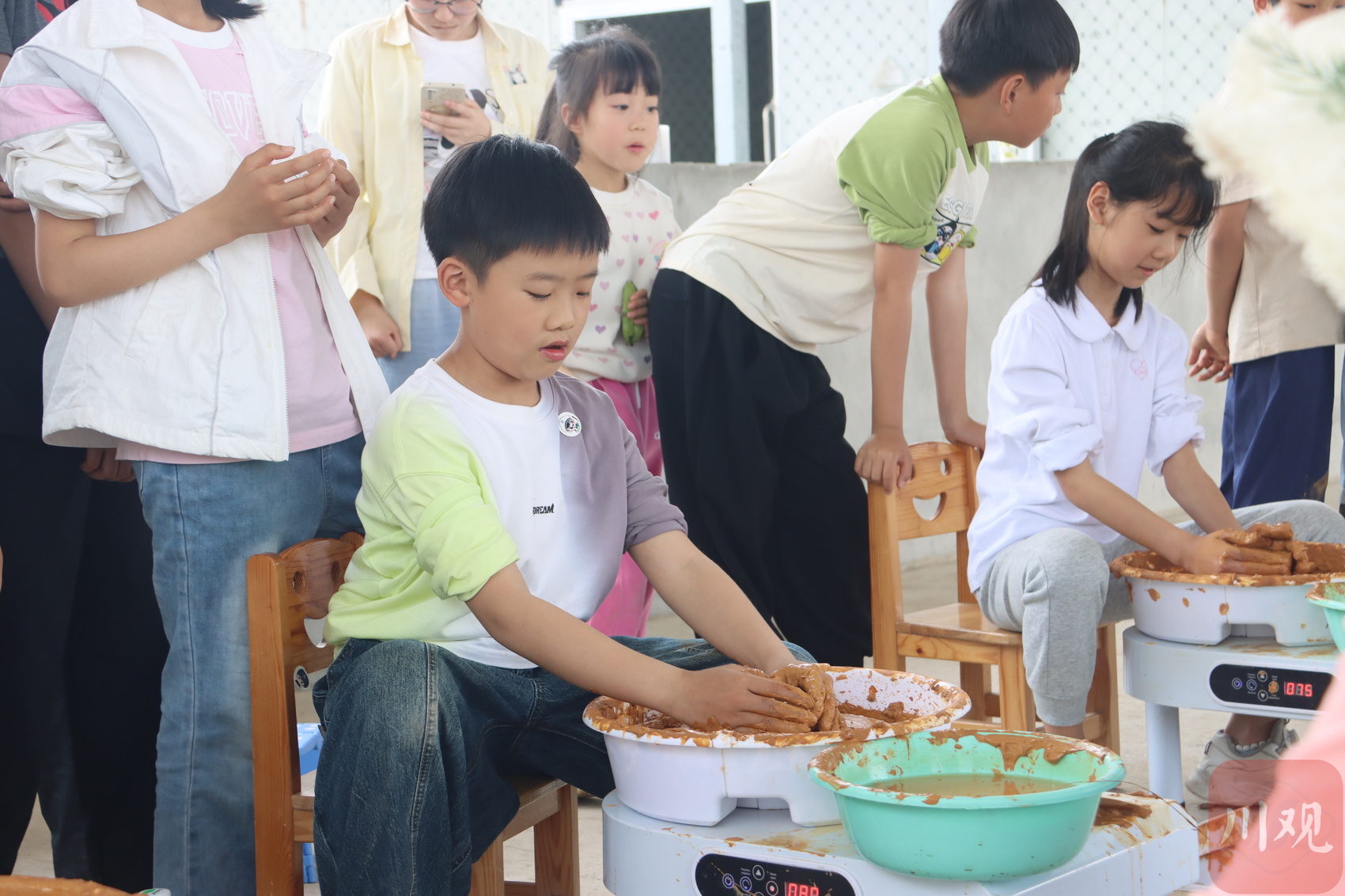 孩子们在制作土陶。灵应寺社区供图