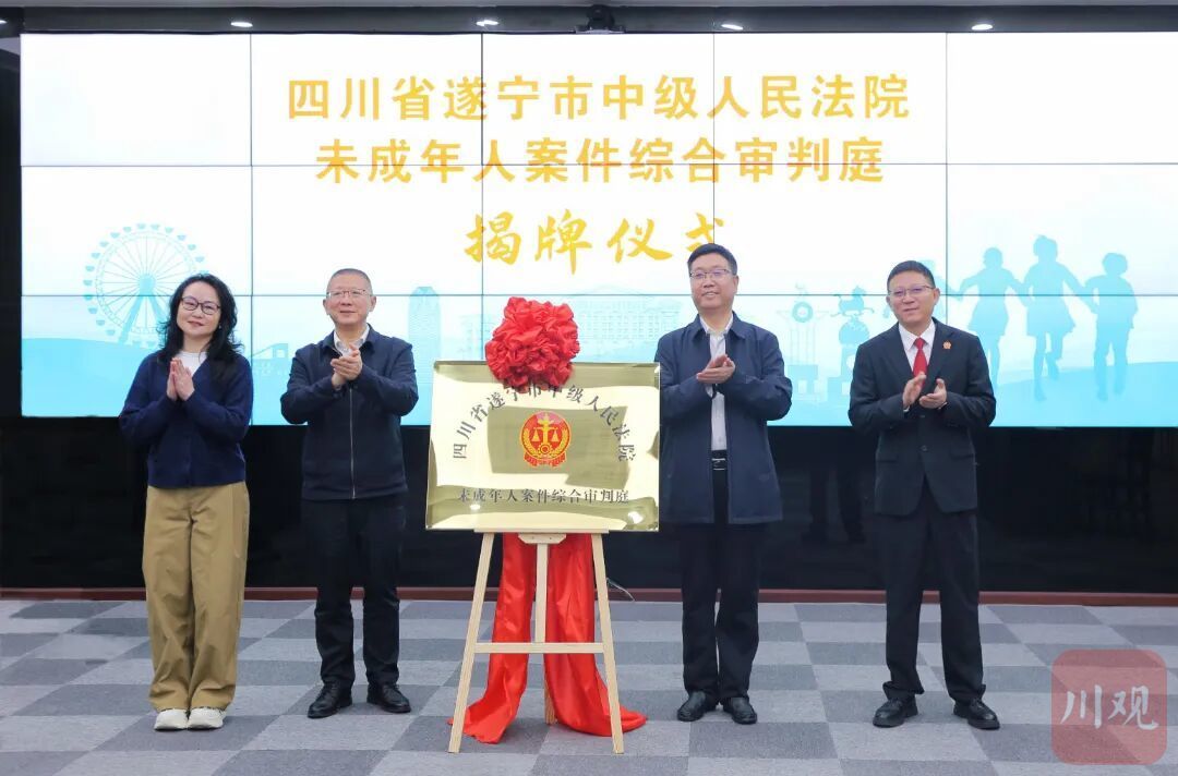 4月14日,遂宁市中级人民法院举行未成年人案件综合审判庭揭牌仪式,现场宣读了关于设立遂宁市中级人民法院未成年人案件综合审判庭的批复,省市相关领导共同为未成年人案件综合审判庭揭牌。这一专业审判机构的设立,标志着遂宁未成年人司法保护迈入“综合化、专业化、全链条”的新阶段。