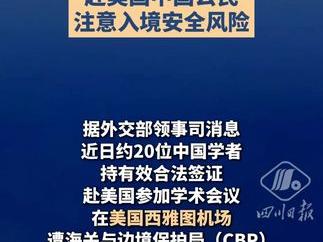 近日,约20位中国学者持有效合法签证赴美国参加学术会议,在美国西雅图机场遭海关与边境保护局(CBP)执法人员无理盘查并被拒绝入境。