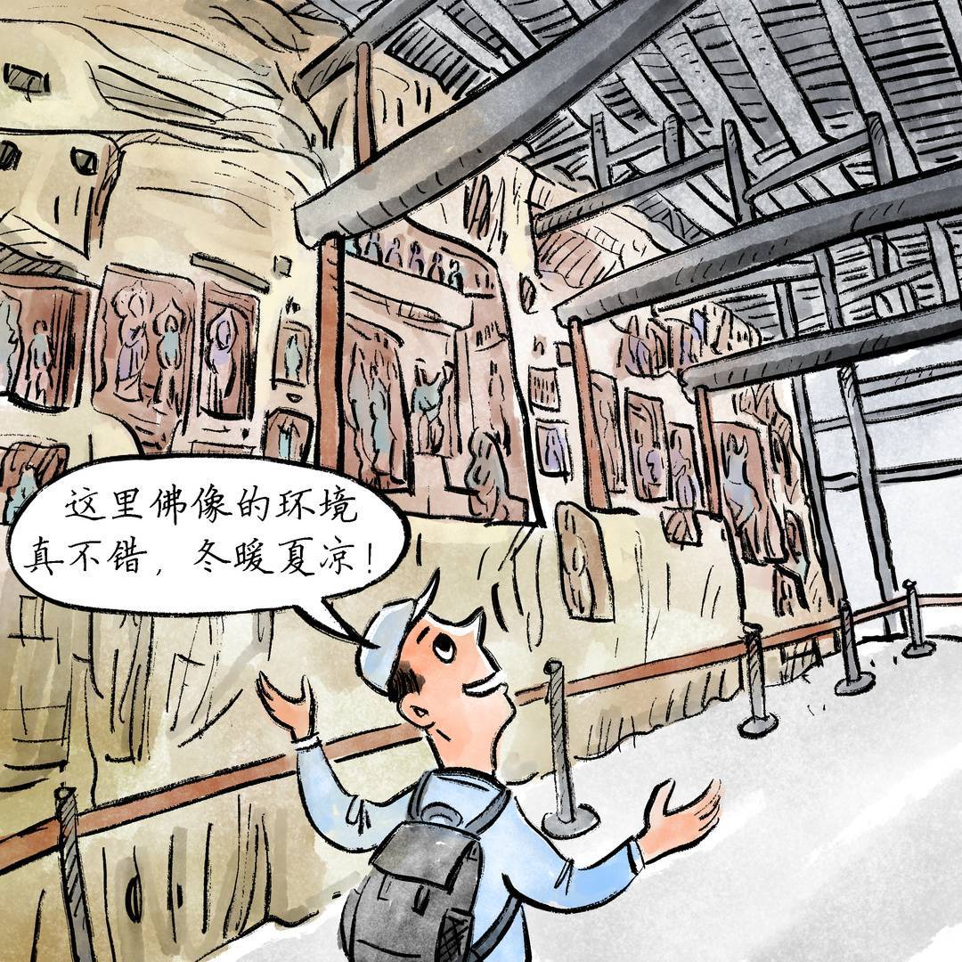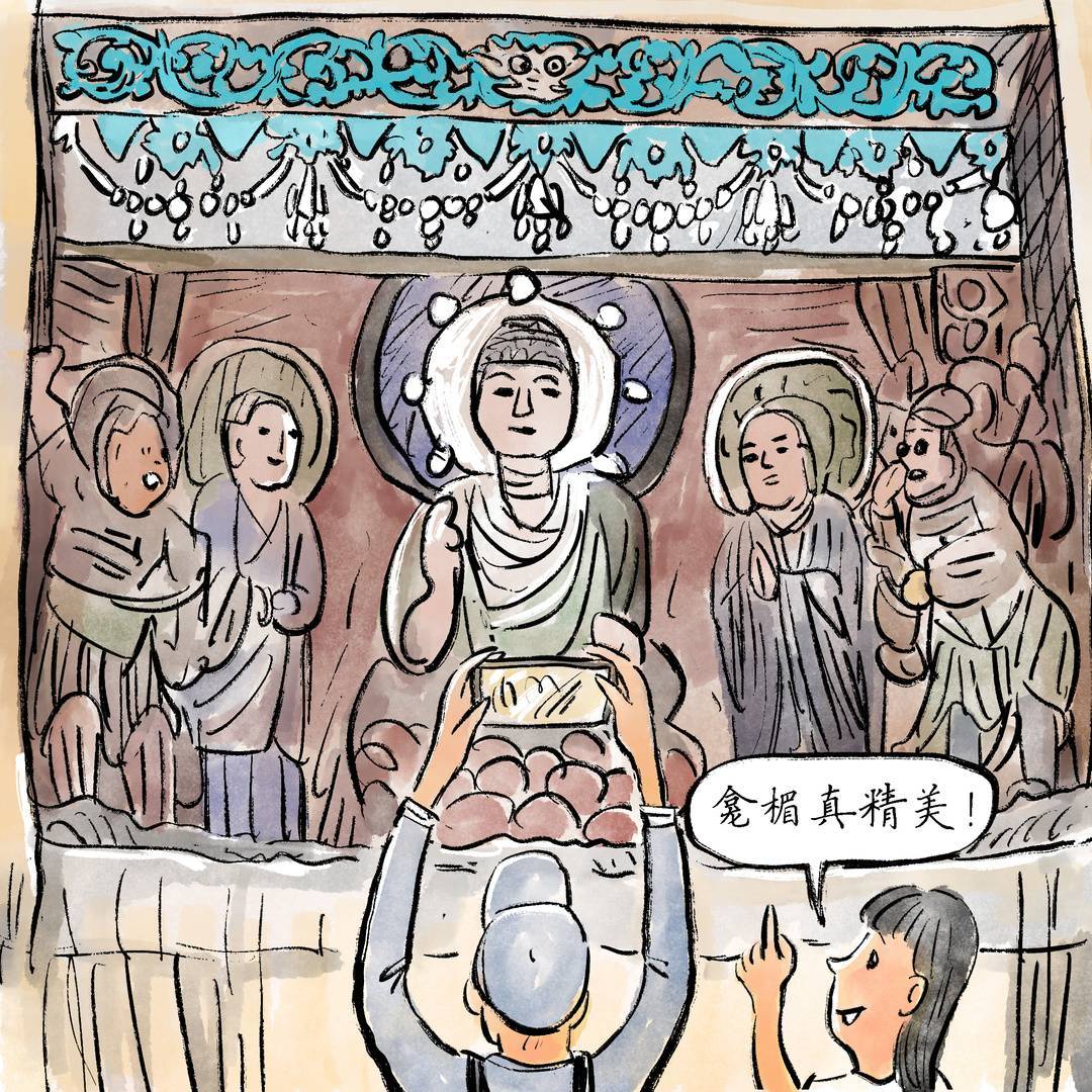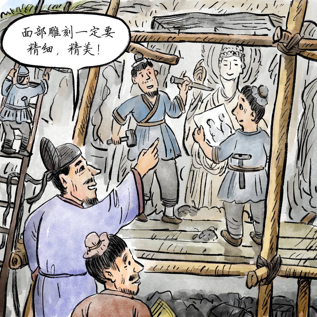 龛楣精美,装饰性强:匠师们在造像中以人物的雕造为主,但又十分注重龛楣的雕刻、彩绘。设计了很多的屋形龛,雕了花草、动物、天神、化佛等图案,加强了装饰性,并配合主体雕像,对佛教题材内容的表达起到了辅助作用。同时,以绿、红、白、蓝、土红等色进行彩绘,使龛楣有清新的感觉、磅礴的气势。