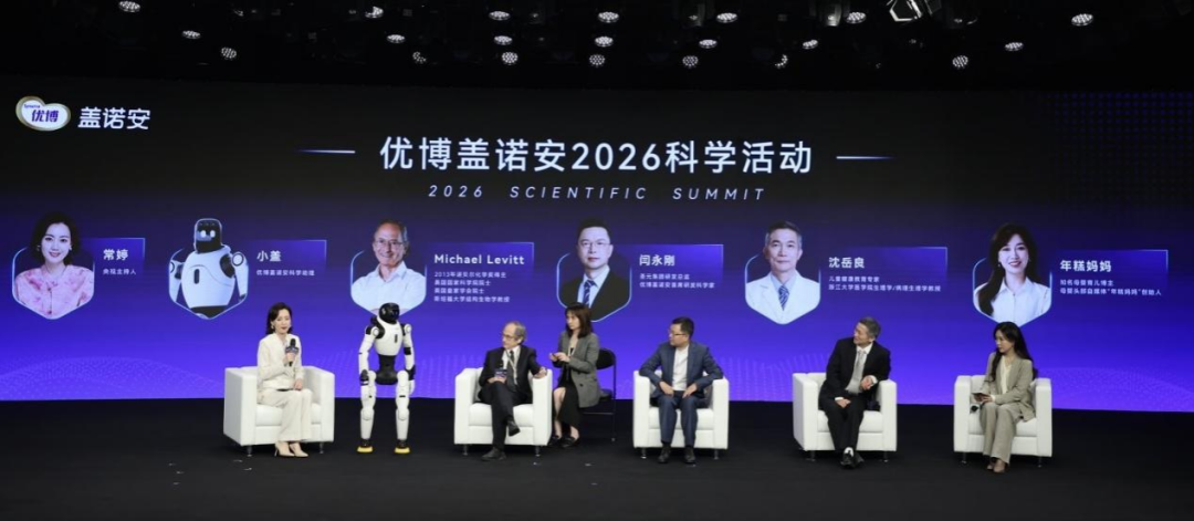 科技赋能科学喂养,成为本次科学活动的一大亮点,活动特设“儿童生长发育关键营养补充及科学喂养方式” 跨界圆桌讨论会,优博盖诺安特邀科学家迈克尔・莱维特教授、优博盖诺安首席研发科学家闫永刚先生、浙江大学医学院生理学教授沈岳良教授(退休)、知名母婴育儿博主 “年糕妈妈” 李丹阳女士四位嘉宾同台思辨,更有优博盖诺安 AI 科学助理小盖作为特殊伙伴登场,上演了一场科技与权威科学的精彩碰撞。