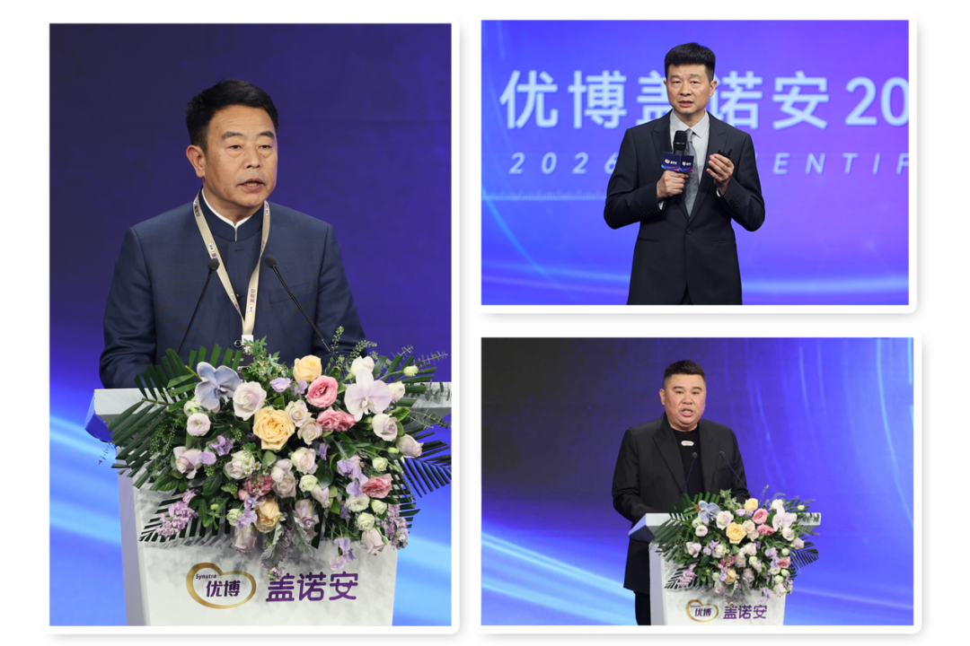 图9:圣元优博集团总经理李卫明、优博盖诺安董事长孙昌奎、优博盖诺安总经理陈宏睿分别致辞