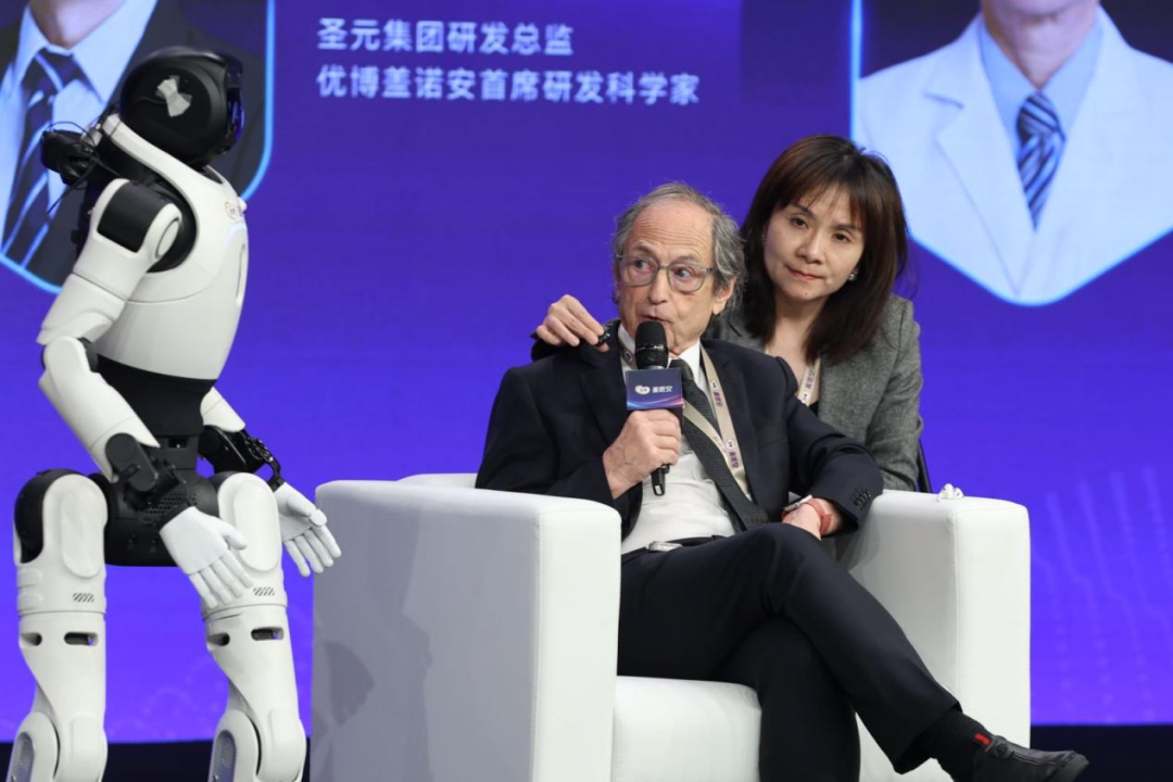 图5:优博盖诺安AI科学助理小盖与迈克尔・莱维特教授互动现场