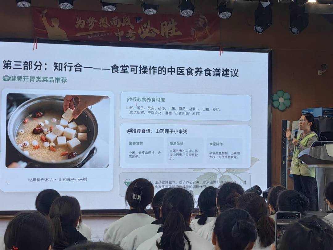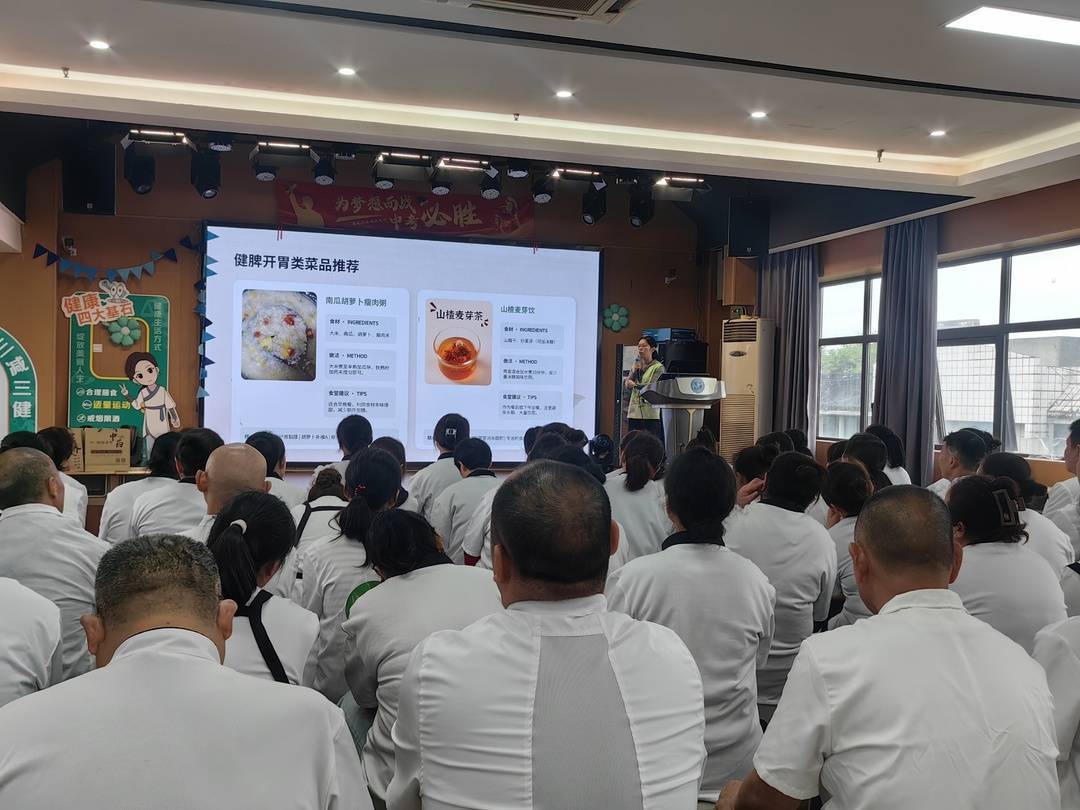 理论之后,实用内容接连展开。江医师从食材的性味、搭配原则到烹饪方式,给出了可落地的方案。“山药、莲子、小米,都是健脾的好东西,熬成粥,孩子们爱喝也好吸收。”她现场推荐了山药莲子小米粥、四神汤炖排骨等食疗食谱,详解了食材配伍原理与制作要点,指导厨师们在日常备餐中巧妙运用“药食同源”的食材,从源头帮助孩子调理体质、管理体重。