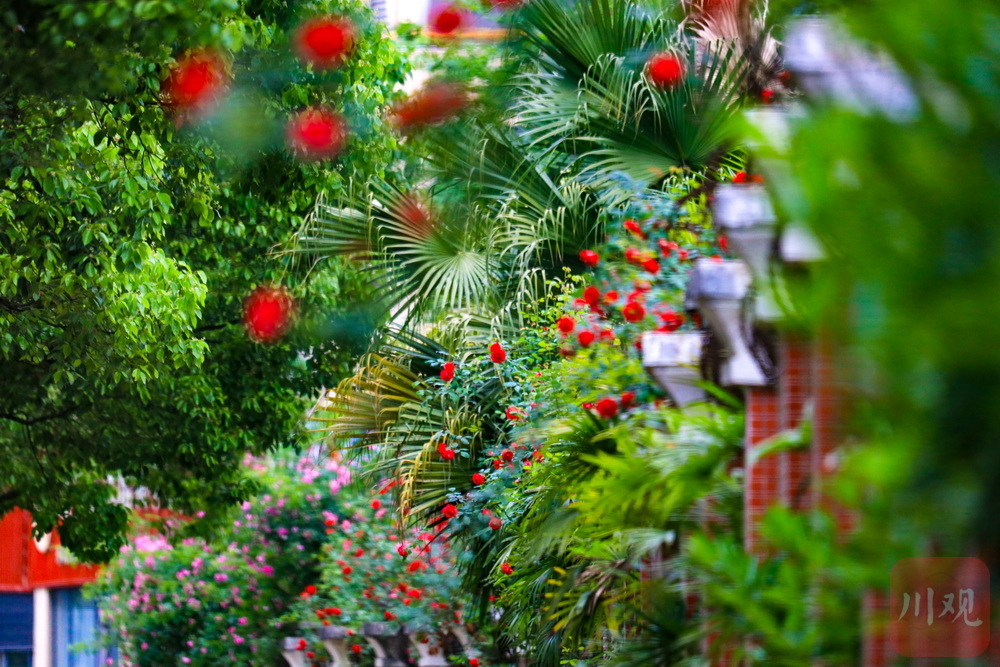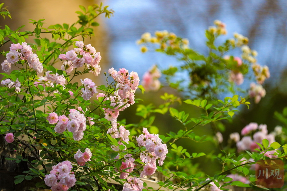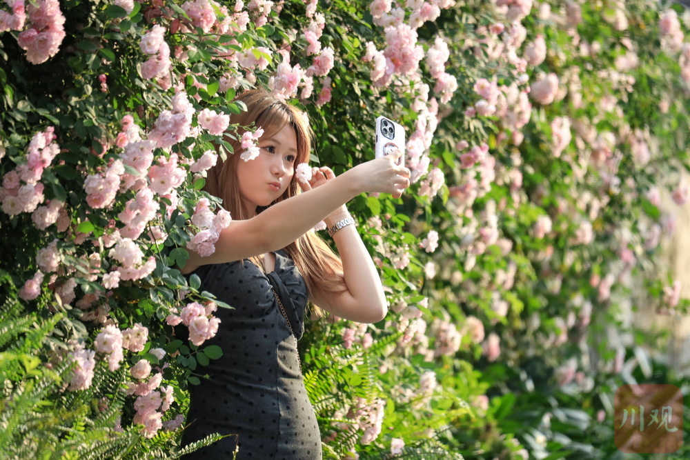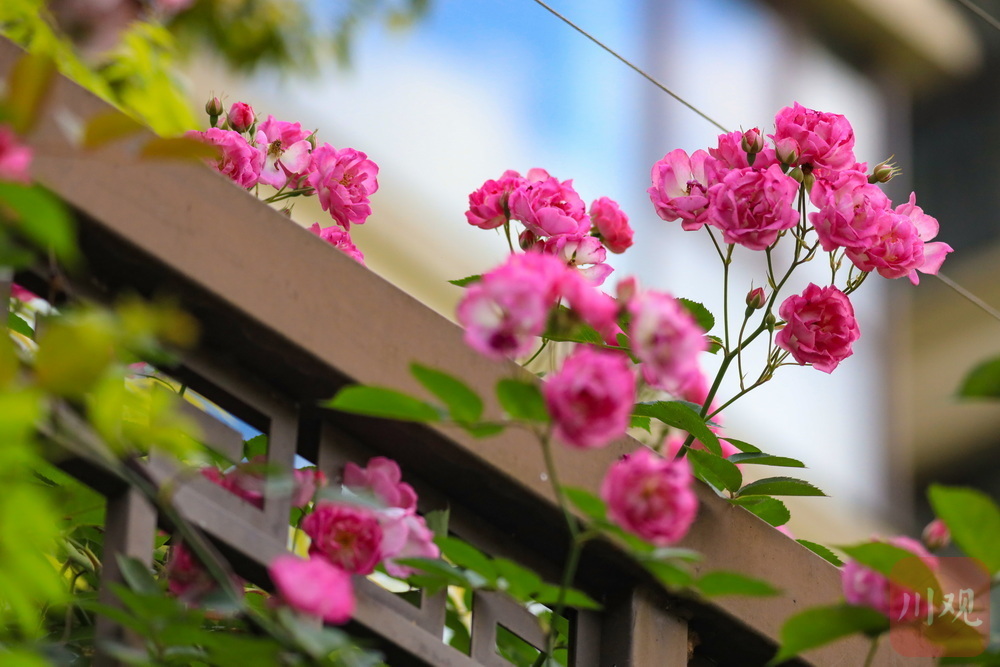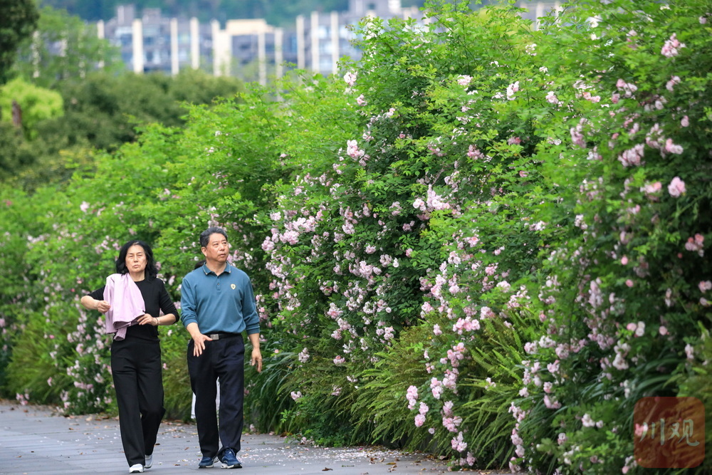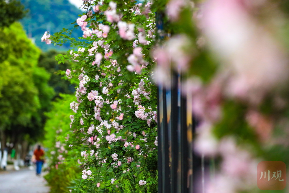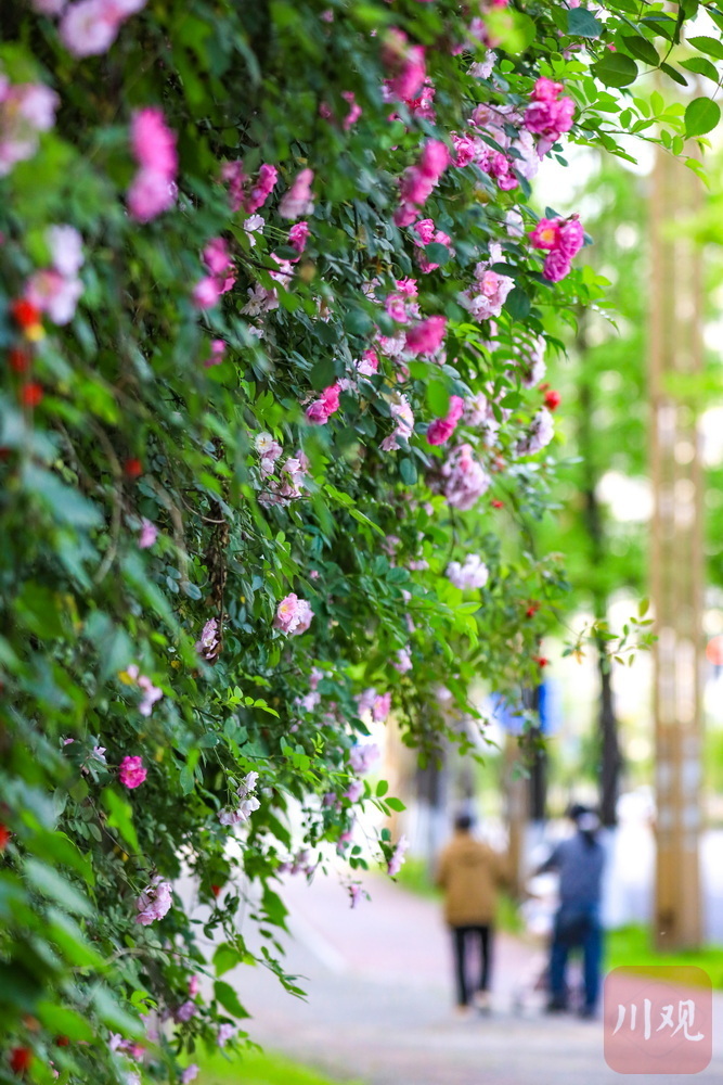 暮春四月,雅安悄然踏入绚烂的“蔷薇季”。4月15日,漫步于雅安市雨城区大街小巷,围栏与院墙上,一簇簇、一丛丛蔷薇、月季等热烈盛放,大红、粉红、雪白等各色花朵簇拥成团,宛如云霞倾泻而下,又似灵动的花墙“瀑布”,将城市妆点得诗意盎然,让市民在暮春时节与满墙繁花撞个满怀。