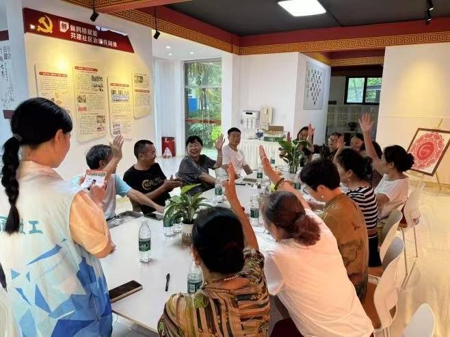 多元参与让居民从“围观”变“主角”。社区创新“居民点单 — 网格接单 — 五方协同破单”机制,发布“最美回家路”“文明养宠”“安全隐患巡查” 等6项微公益创投项目,全部由居民认领实施,认领率、完成率均达100%。每月一场主题议事会,累计解决民生诉求32条,真正实现 “大家事、大家议、大家办”。