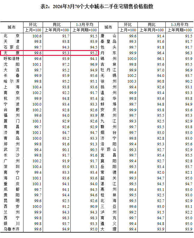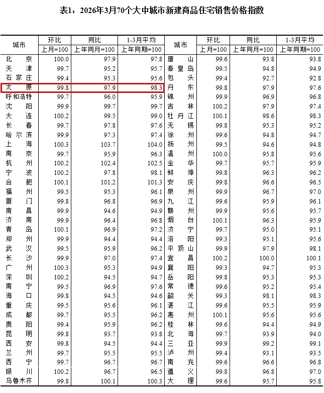 国家统计局4月16日公布数据显示,2026年3月份,70个大中城市中,一线城市商品住宅销售价格环比上涨,二三线城市环比降幅收窄或相同。新建商品住宅和二手住宅销售价格环比上涨城市个数均比上月增加。