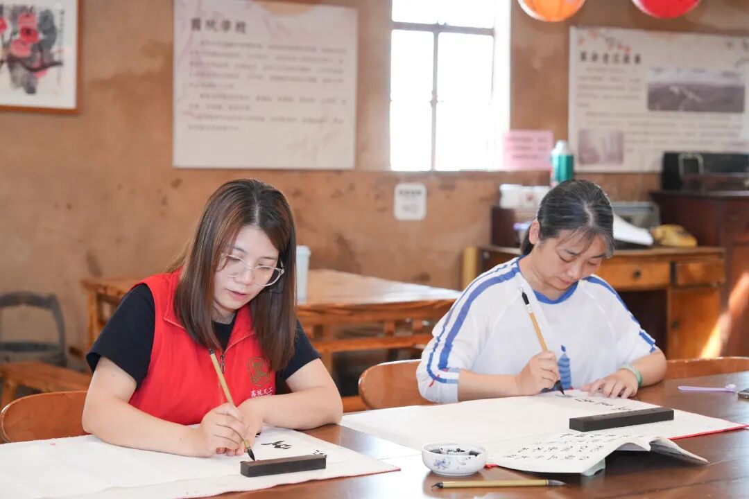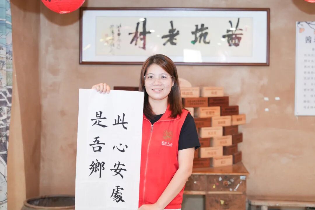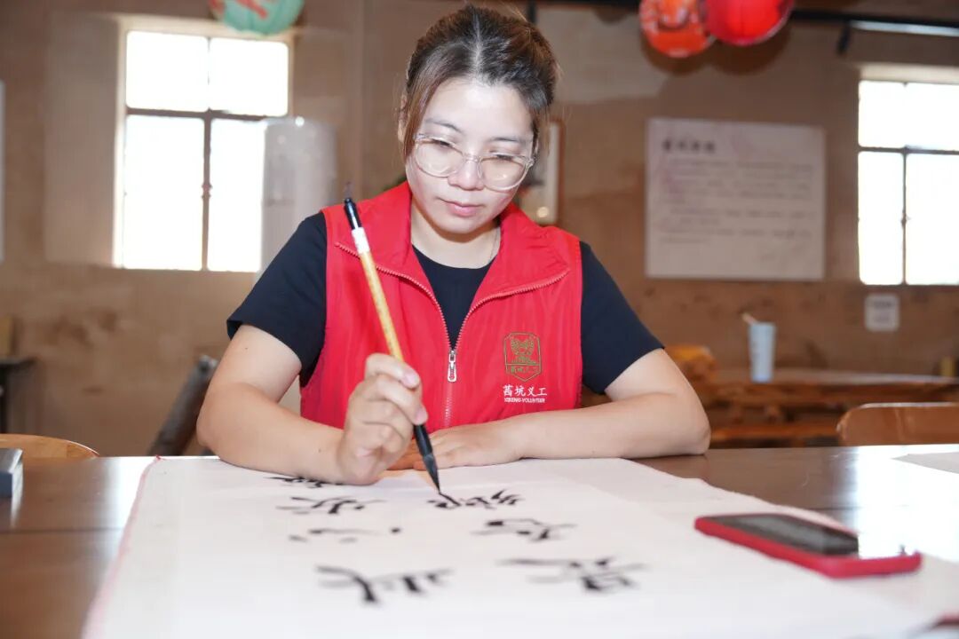 她常常把参与活动的照片分享给家人,红马甲的身影,成了她最亮眼的“家乡名片”。邻里间的守望相助、朝夕相伴,让她早已把茜坑当作真正的家。书法课,她最爱写下四字:此处心安。
