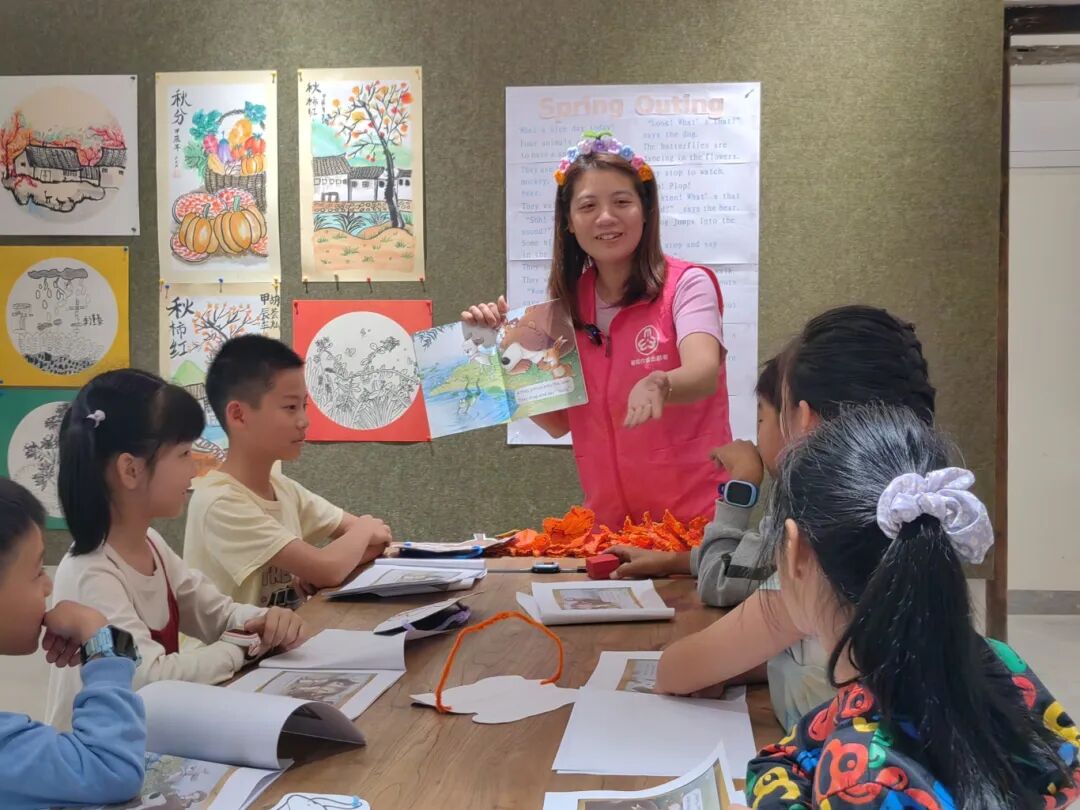 除了书法,她还凭借语言优势开设英语绘本课。她的手很巧,她自己动手做上课道具,五分钟,一团普通的橡皮泥就在她手里变成一只栩栩如生的小动物。孩子们每次看到她掏出新的“小玩意儿”,眼睛都亮了。