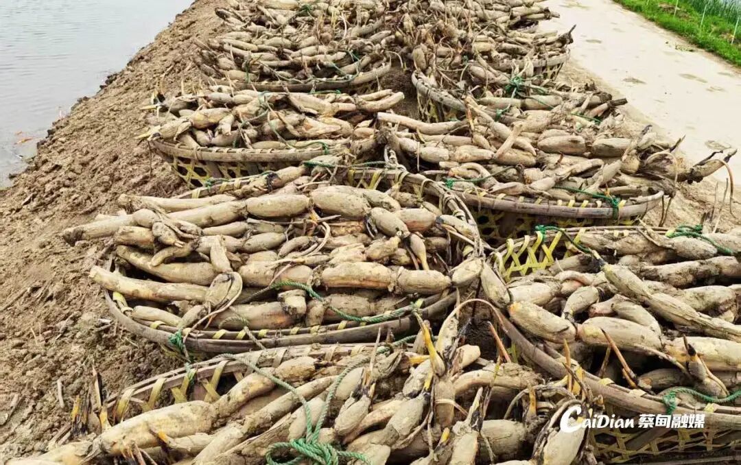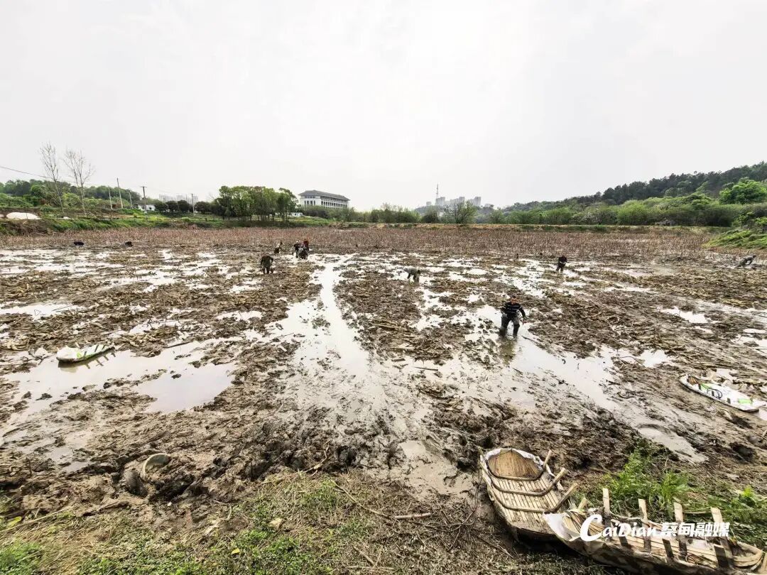 藕农正在采挖“天成藕”藕种