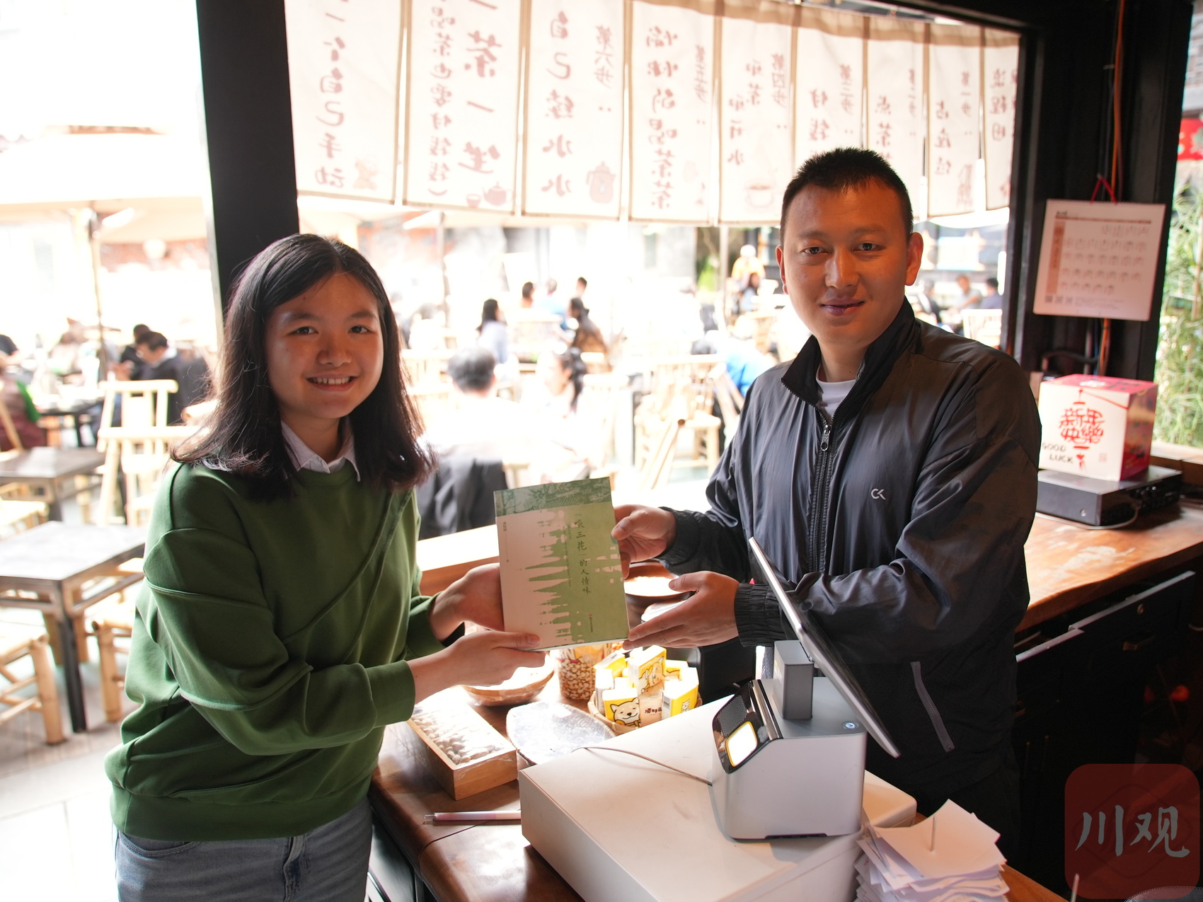 4月初,趁着放春假,成悦闻从北京回到成都。尽管日程紧凑,她仍特意腾出半天时间,来到位于市中心的大慈茶社回访,把新书送给老板。