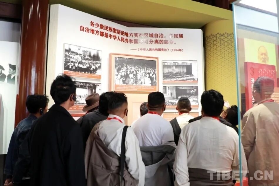 在蒙藏学校旧址西院,参观团成员缓步参观“蒙藏学校旧址专题展”和“中华一脉 同心筑梦——中国共产党民族工作光辉历程和伟大成就主题展”,了解中国共产党百年民族工作的光辉历程和伟大成就。