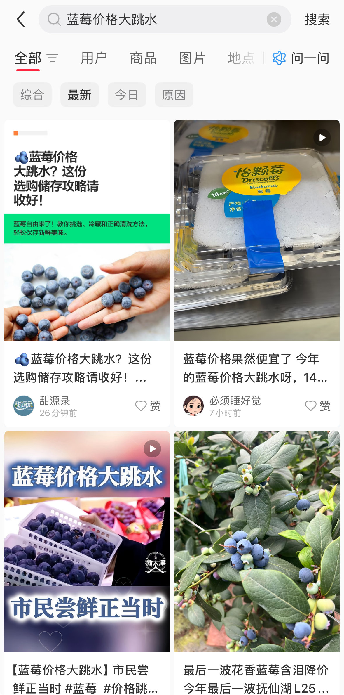 社交平台上有关“蓝莓价格大跳水”的讨论。