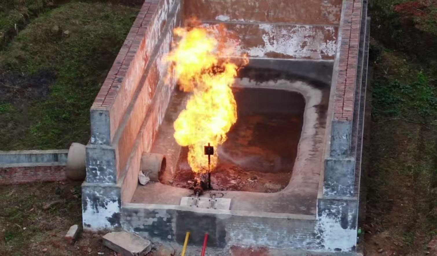 四川省属油气区块首井乐探1井试气点火成功。(图片由天府油气公司提供)