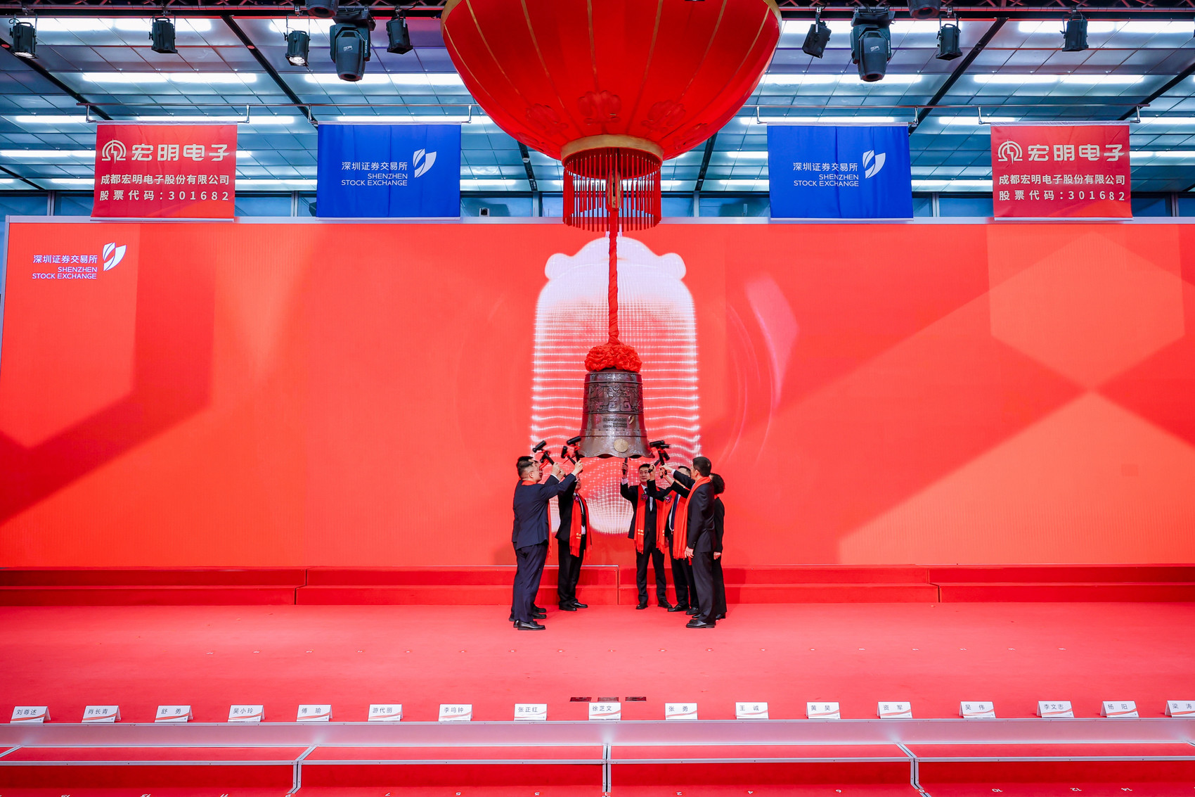 成都宏明电子股份有限公司在深交所敲钟上市。(四川能源发展集团供图)