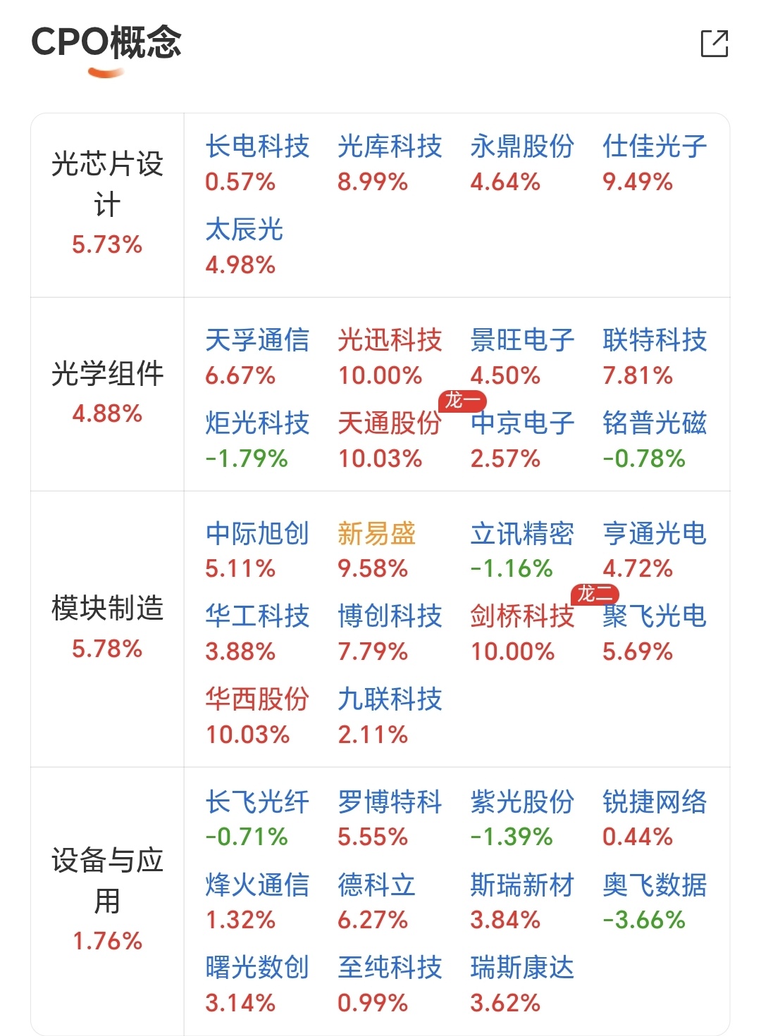 受中际旭创带动,盘面上,算力硬件板块今天迎来全面爆发。光模块与PCB两大赛道成为资金布局的核心焦点。数据显示,CPO概念板块内16只个股涨停;5G概念、芯片概念资金扎堆迹象明显。剑桥科技、光迅科技、广合科技等个股纷纷封死涨停。