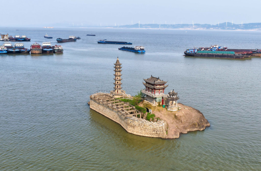 2026年4月17日拍摄的江西省庐山市鄱阳湖落星墩附近水域。