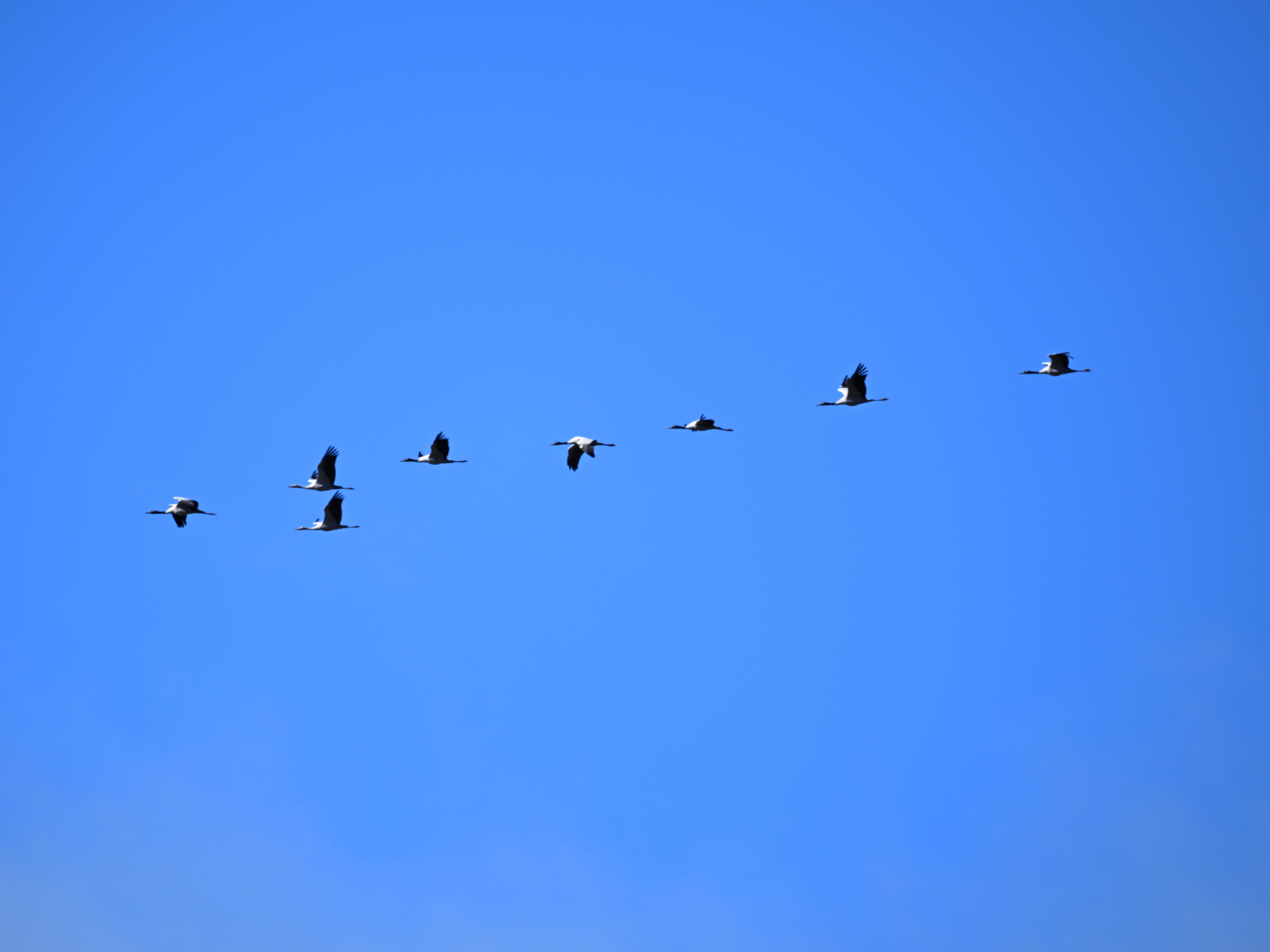 近段时间,黑颈鹤密集飞回四川省阿坝藏族羌族自治州若尔盖县,这也吸引大量观鸟爱好者前去观赏、记录。4月上旬,在若尔盖县唐克镇靠近黄河的区域,观鸟爱好者任河清拍到了两只黑颈鹤嬉戏打闹,打出一套“鹤拳”的场面。同时,他还拍到了两只黑颈鹤“比翼齐行”的画面。(素材由受访者提供)
