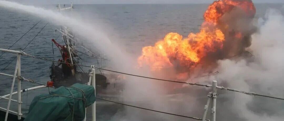 △海警舰艇对失火渔船进行灭火
