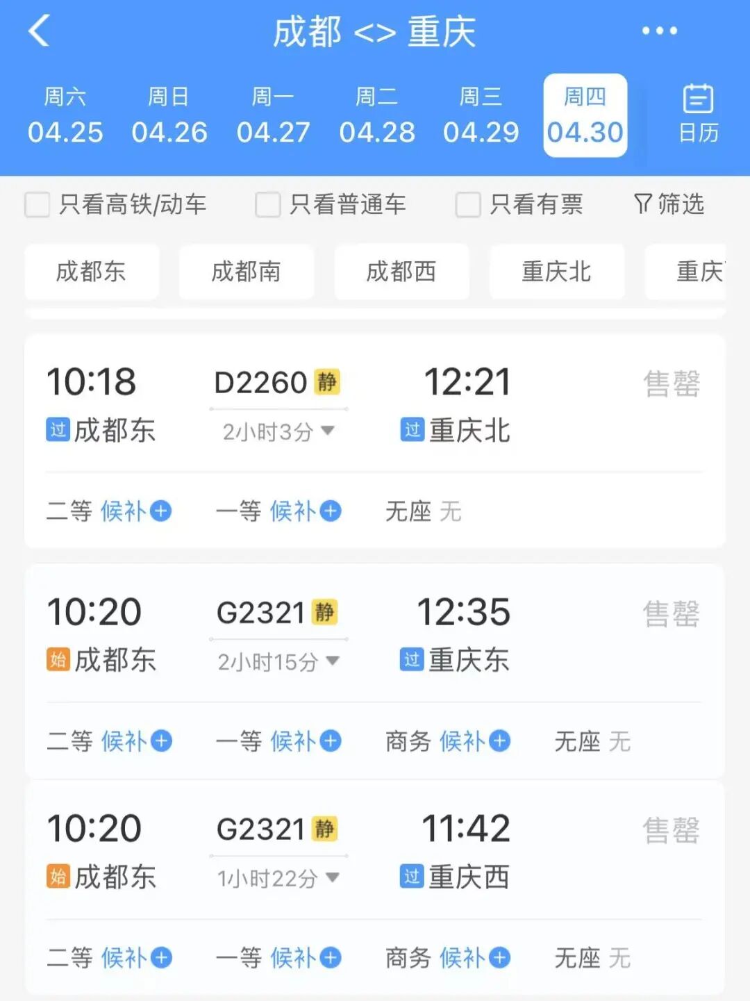 同程旅行平台数据显示,截至4月16日上午10点,已开售的京港、京广、沪昆等多条长途干线出现“秒空”,长三角、珠三角、京津冀、成渝等地一小时内城际线路的热度也出现飙升。