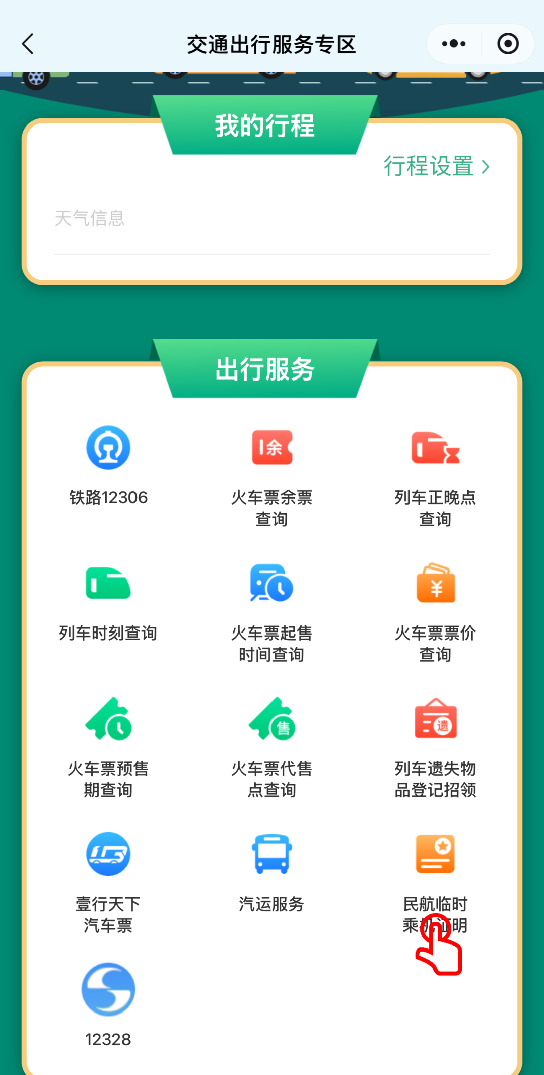 坐飞机忘带身份证?用交通出行服务专区-民航临时乘机证明!仅需1分钟即可生成本人临时乘机证明,凭此证明就能顺利登机。