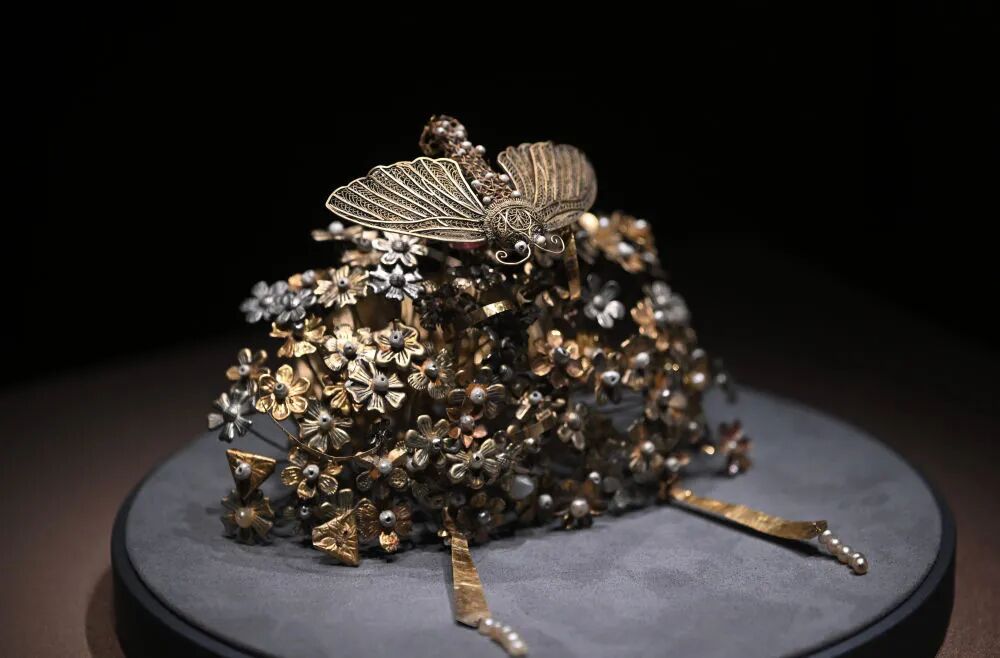 这是展出的闹蛾金钗(4月13日摄)。新华社记者金良快 摄