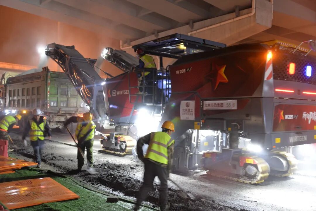 与此同时,“北京修路名场面”再次出现:浩浩荡荡的机械车辆队伍从四面八方集结,听从指挥,有序驶入各个施工作业面,滚动推进各项工序。一时间,机械轰鸣,铣刨机先行啃食旧路面,喷淋设施生成水雾降尘。