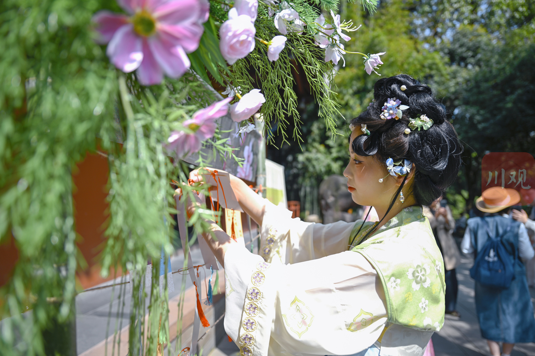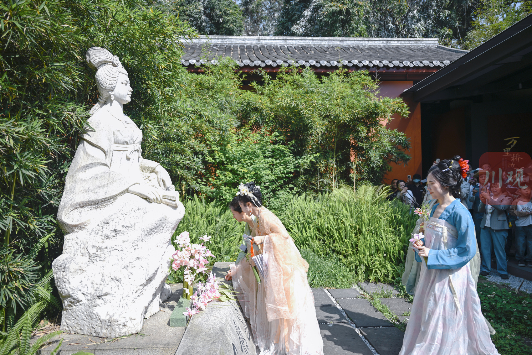 汉服爱好者在薛涛像前献花