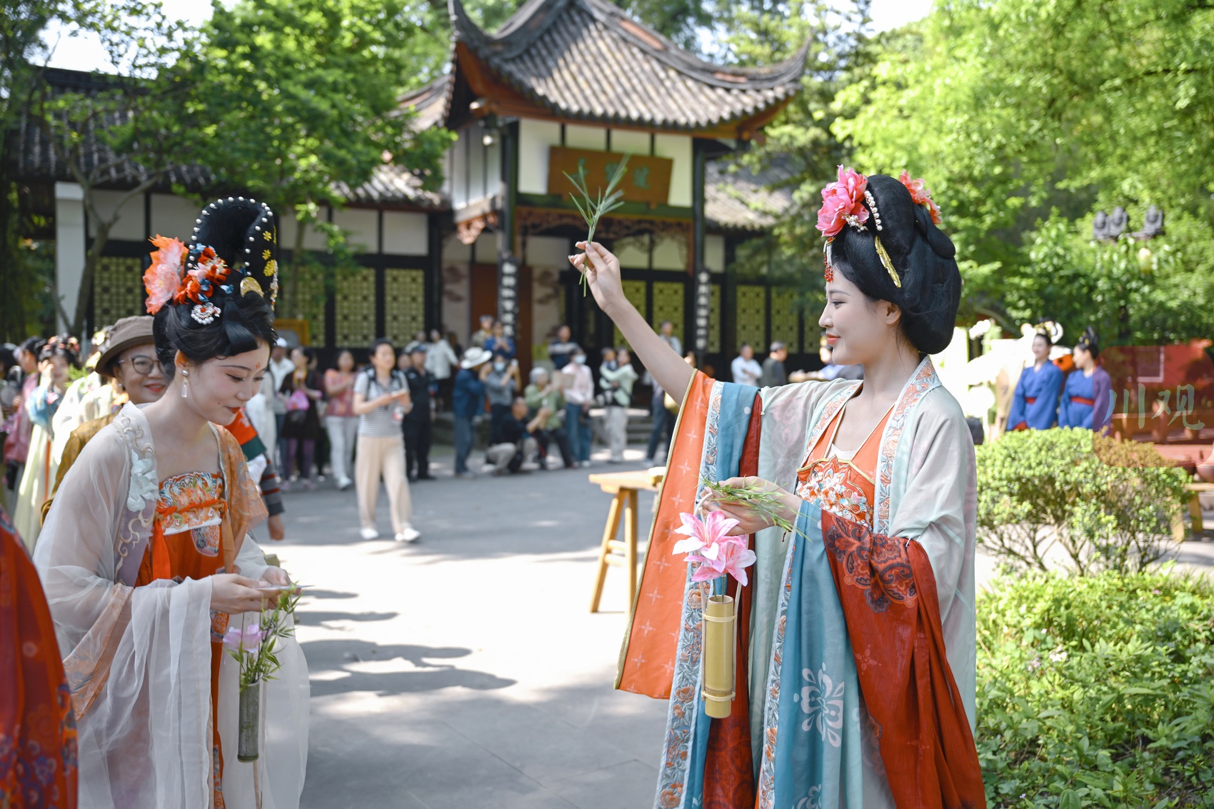 “薛涛”(右)手持水器与竹枝,为现场观众行祓禊之礼