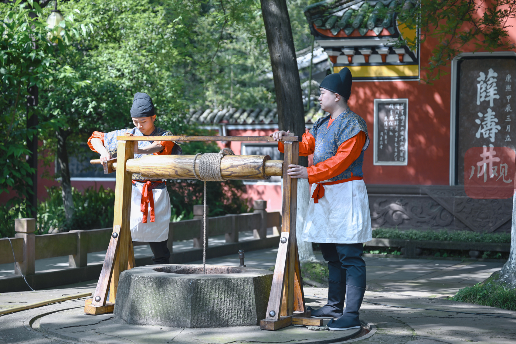 古装演员复刻明代蜀王府上巳节的取水制笺