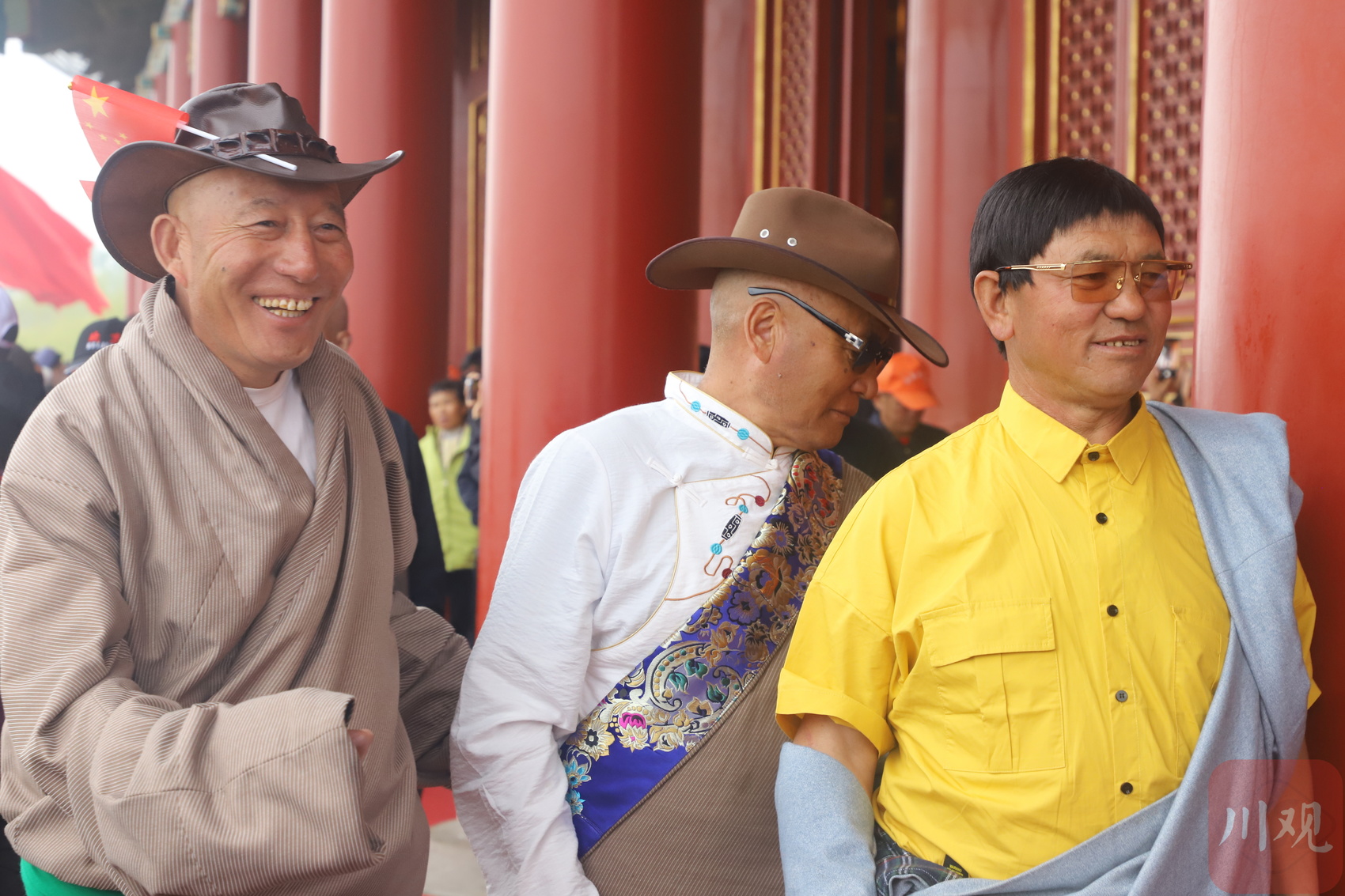 一些老支书还特地穿上藏装,川主寺镇寒盼村离任党组织书记彭措就是其中一位,这对他有着特殊意义。彭措所在的川主寺镇,是红军长征胜利纪念总碑所在地。他说,今年是红军长征胜利90周年,革命先烈的付出以及党的民族政策,让家乡发生了巨大变化。因此,他非常想到北京看升国旗仪式。