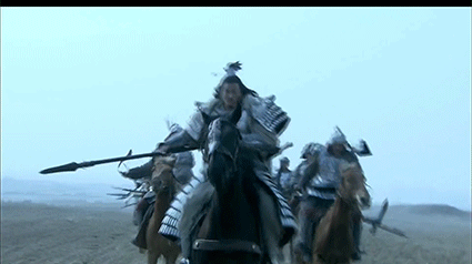 ▲电视剧《楚汉传奇》中何润东饰演的项羽身穿战甲驰骋沙场
