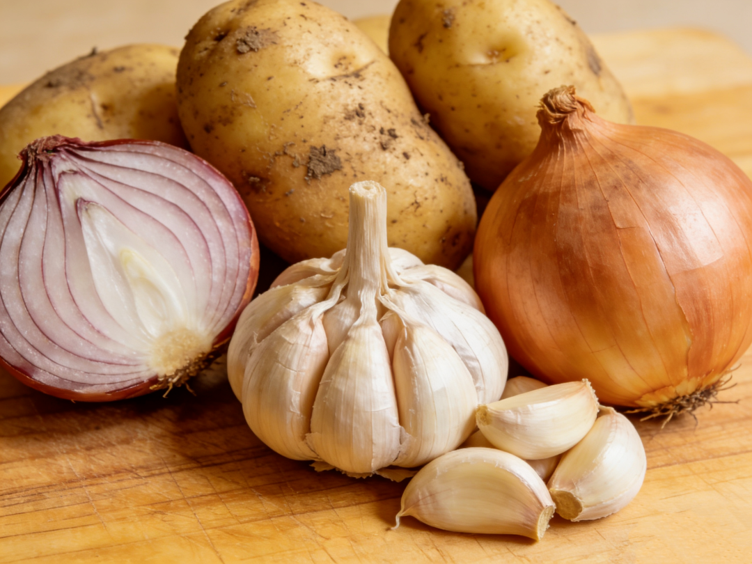 土豆、洋葱、大蒜需要干燥环境。冰箱湿度较高,会让它们吸水发霉。有实验发现,洋葱放冰箱一周,腐烂率比常温高3倍。土豆长期放在低温中,淀粉会转化为糖分,油炸时更容易产生致癌物。