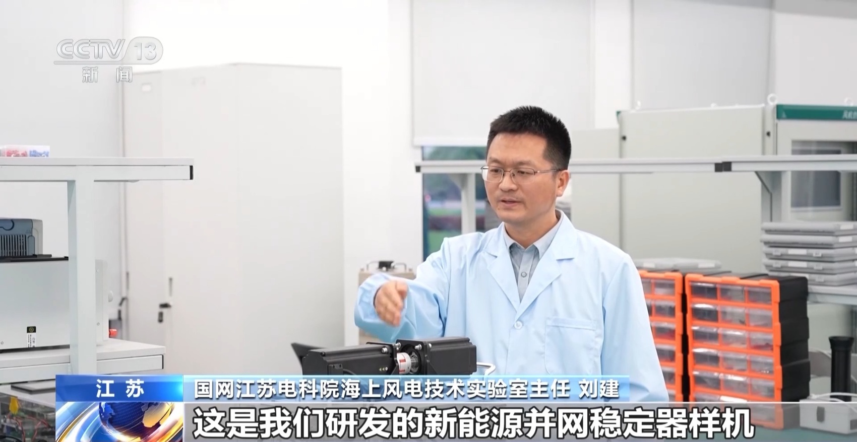 国网江苏电科院海上风电技术实验室高级专家 汪成根:这一块是新能源长距离高效经济并网装备,能实现百公里级深远海风电的高效并网。另一套装备是今年刚刚并网的新能源并网稳定器。旁边还有一块预留区域,也要研制一套新能源的新型并网装备。