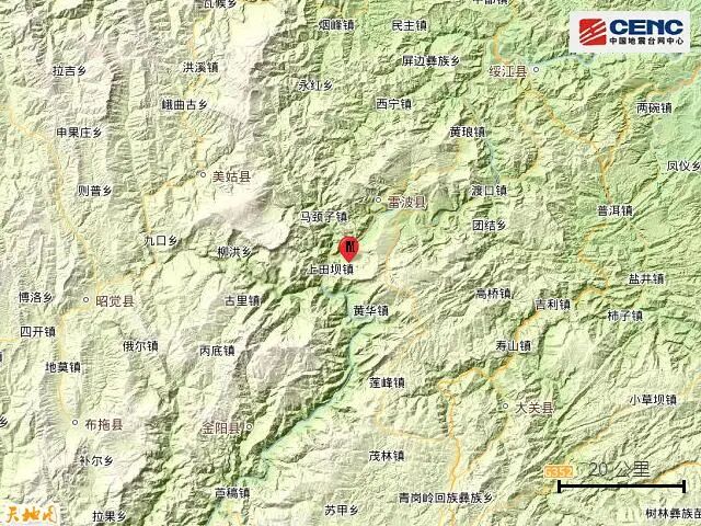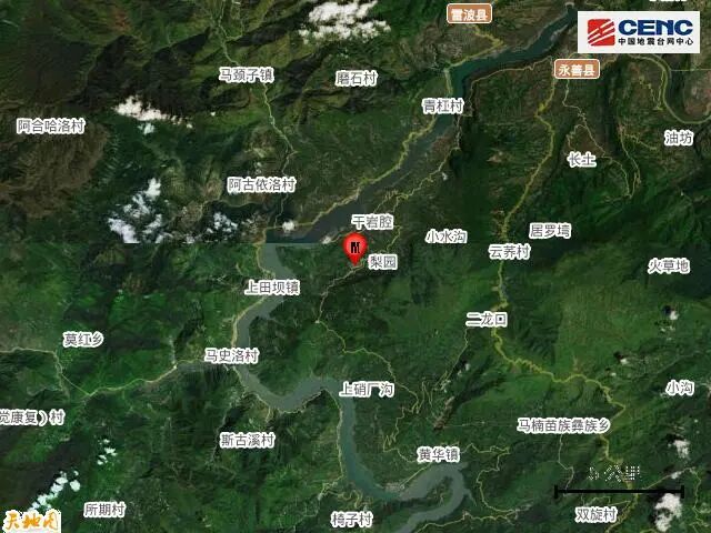 附近村镇:本次地震周边5公里内的村庄有筲箕田、戴家高头、孔家弯、凉台村、四方营、高家岩、牛皮寨、务基街、青龙村、锦屏村,20公里内的乡镇有务基镇、黄华镇、马楠苗族彝族乡。