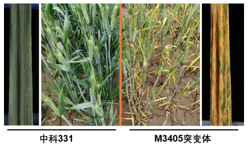 研究人员在田间筛选到小麦品系“中科331”的突变体M3405。它表现出一个奇特的现象:在没有病菌侵染的情况下,植物的免疫反应始终在激活状态。