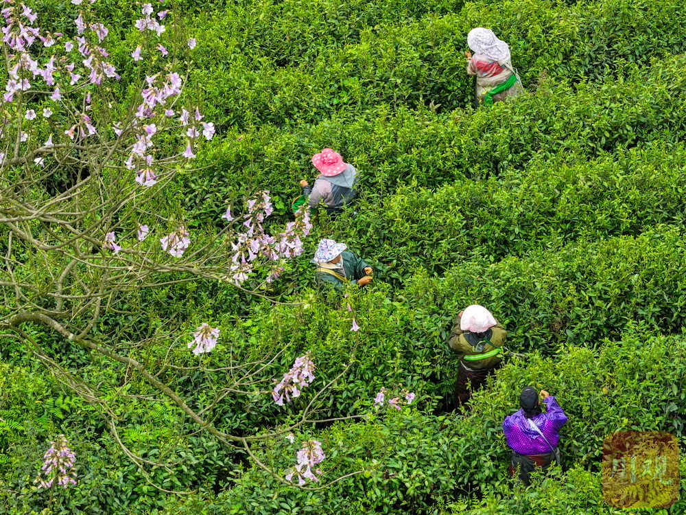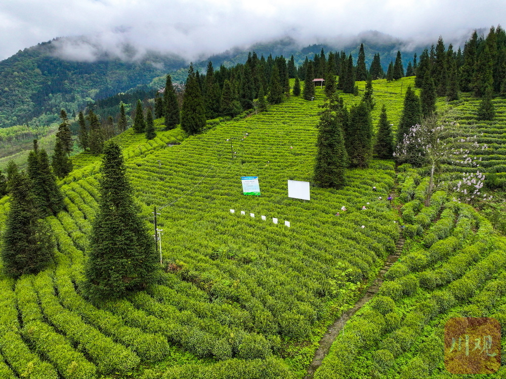 一缕茶香出高山。4月18日,雅安市宝兴县,深山中春意正酣。走进灵关镇云茶、建联等村落,连片的茶垄随着山势起伏,宛如碧波荡漾。村民们腰挎竹篓穿梭其之间,手指翻飞间捻采下一叶叶鲜嫩的茶芽,一派繁忙的丰收景象。