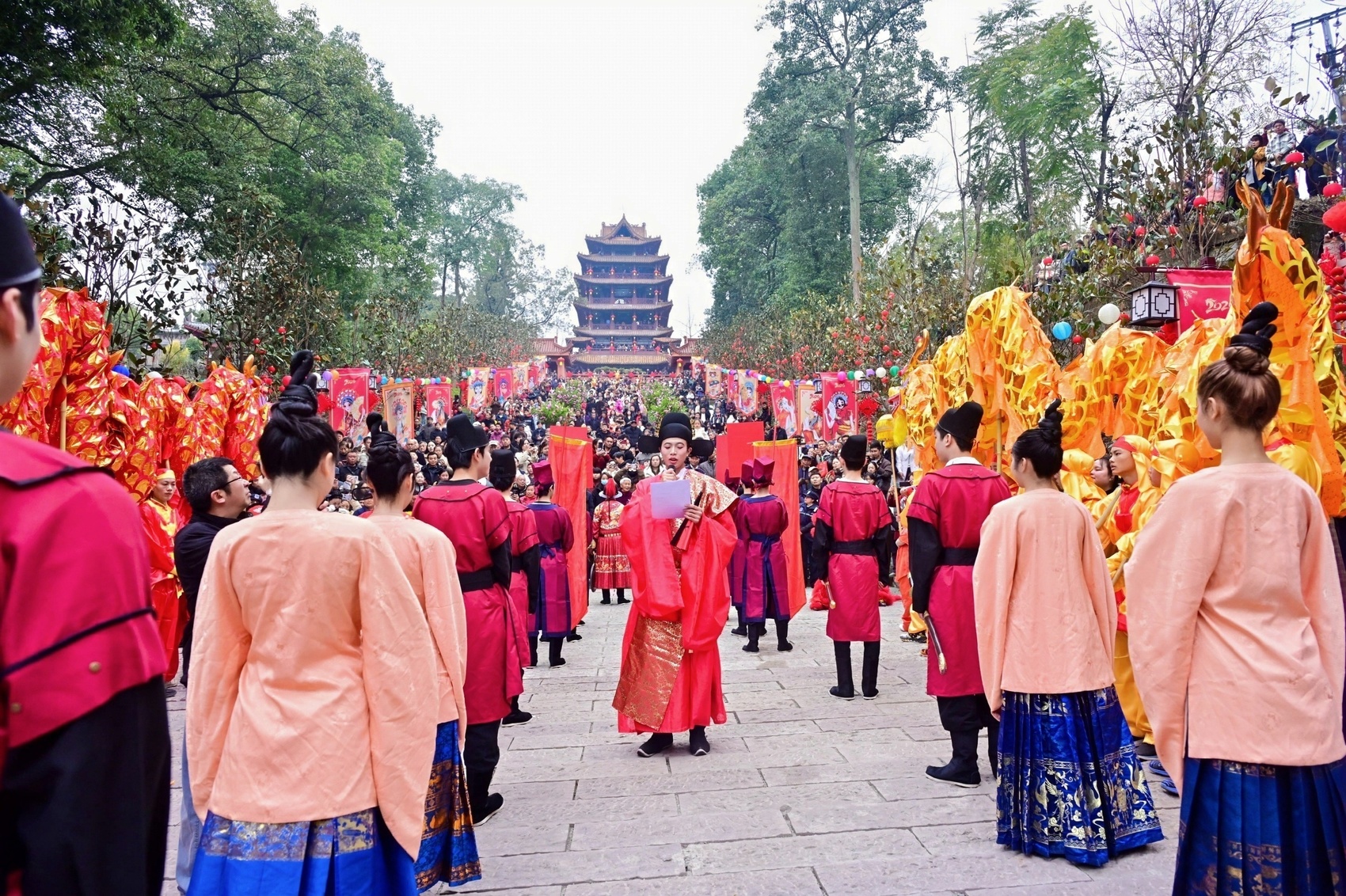重龙山有多火?数据为证:正月初一,以“状元资中・龙马迎春”为主题的2026资中新春庙会在重龙山等点位联动启幕,吸引15万余人次市民和游客沉浸式体验新春氛围;正月初一,1万余人涌进资中县博物馆参观,春节假期其他时间每天也有几千人参观。