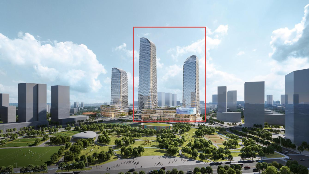 高铁片区地标建筑项目57号地块效果图。