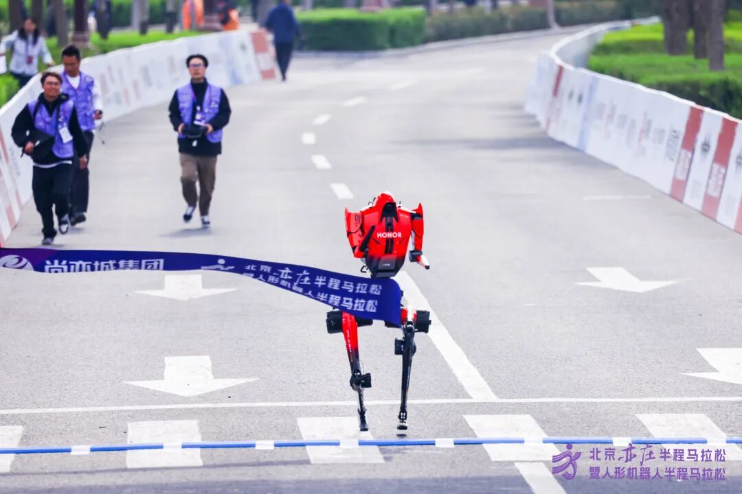 齐天大圣队的“闪电”机器人凭借50分26秒(净用时)的成绩(目前人类半程马拉松的纪录为57分20秒)获得冠军。