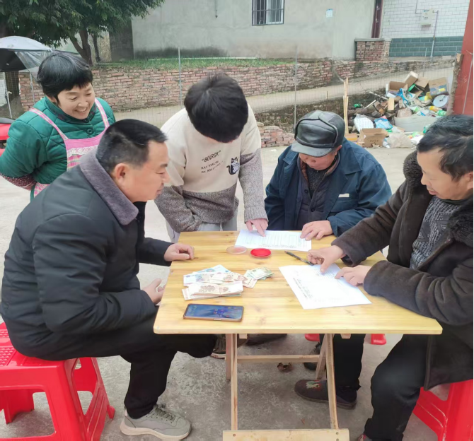 资阳市乐至县宝鼎羊业专业合作社黑山羊代养户分红。省农业农村厅供图