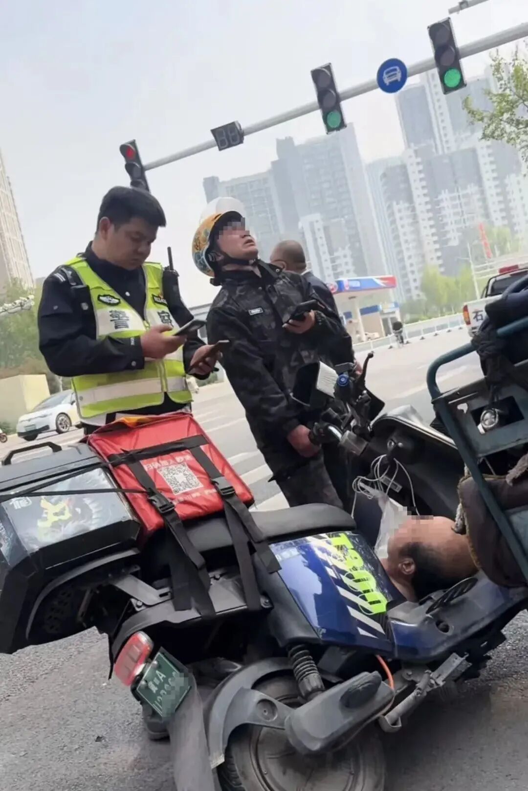 小哥正焦急联系亲友借钱时,石家庄市公安局交通管理局长安交管大队九中队辅警副中队长焦亚楠接到报警后赶到了现场。经认定,外卖小哥在行驶过程中不慎将老人剐蹭摔倒,老人手部仅为轻微擦伤,外卖小哥应承担事故全责。