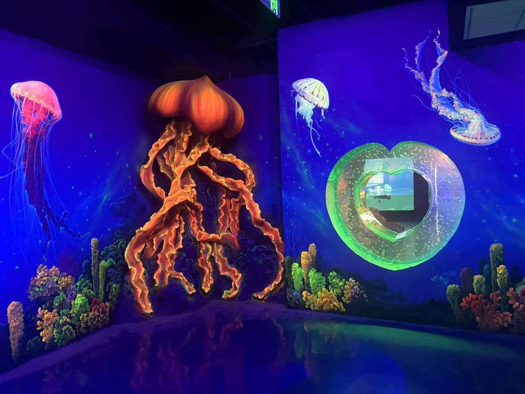 步入海洋馆,映入眼帘是一条长约30米的浪漫海底隧道。在4楼,海狮、海豹、水獭等近20多个观赏点位已准备就绪,美人鱼表演、海狮表演等正在排练。