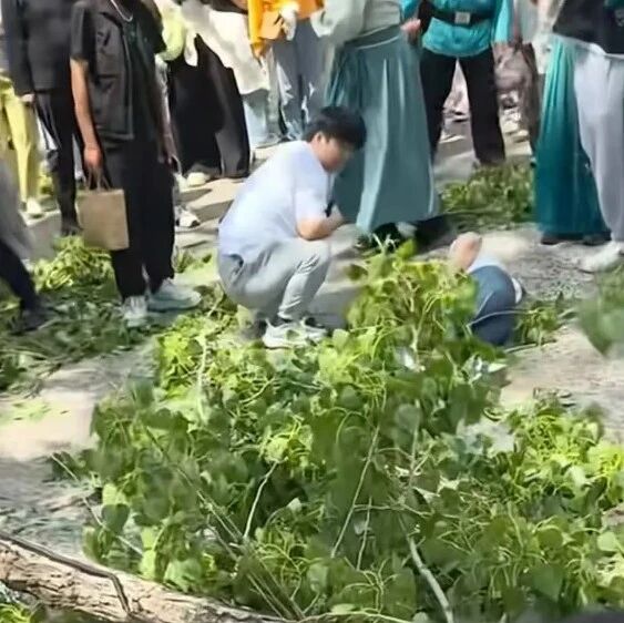 此前,据媒体报道,一段视频里,能看见3名游客躺在地上,旁边有人在呼喊“有没有学过急救”,地面上,有不少树枝。