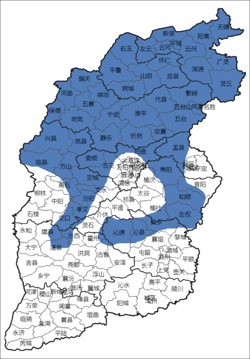 山西省气象台2026年04月19日10时22分发布霜冻蓝色预警,预警区域:大同市、朔州市、忻州市、吕梁市山区、太原市山区、晋中市都名山、阳泉市北部、临汾市北部、长治市北部。